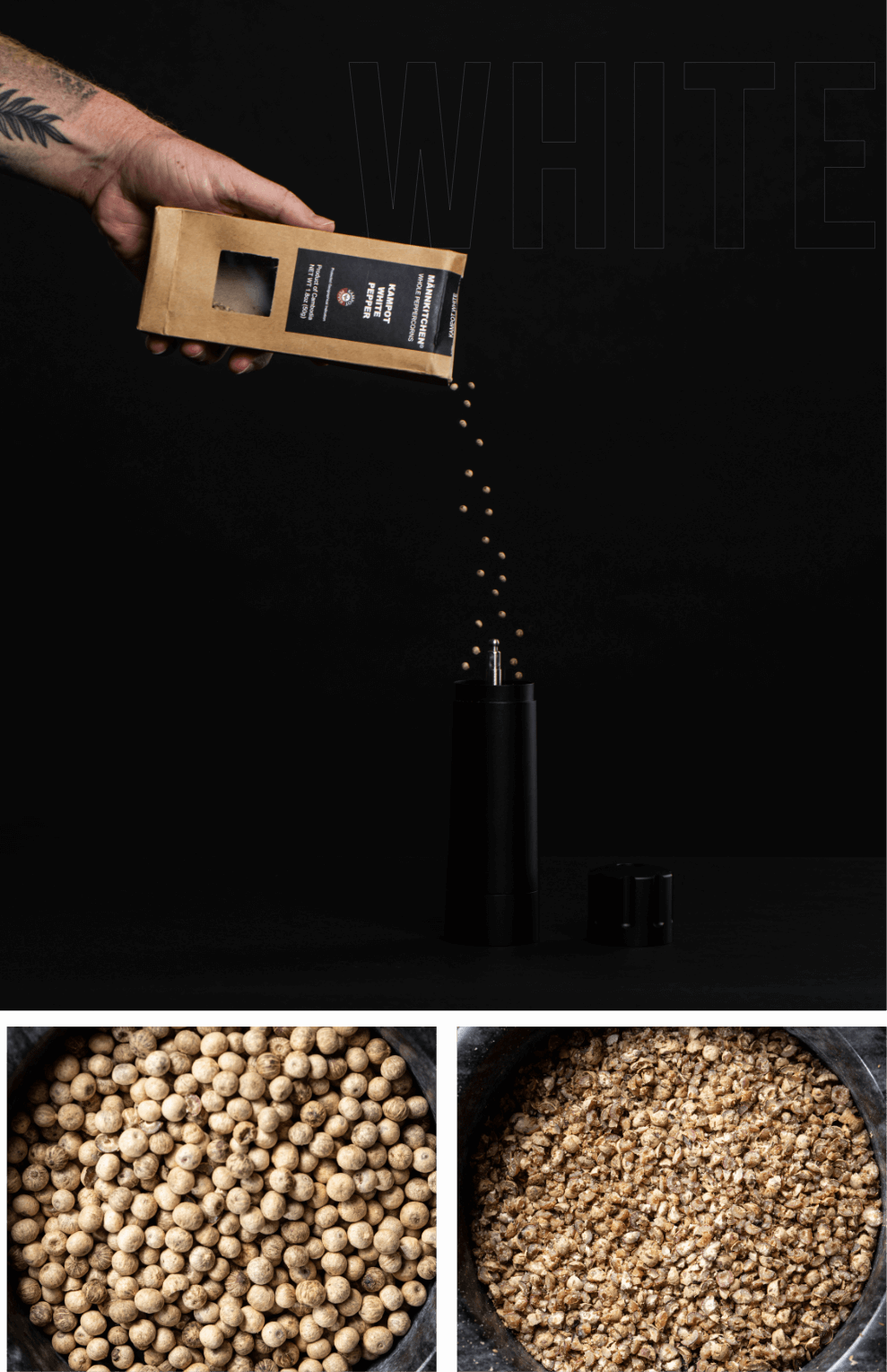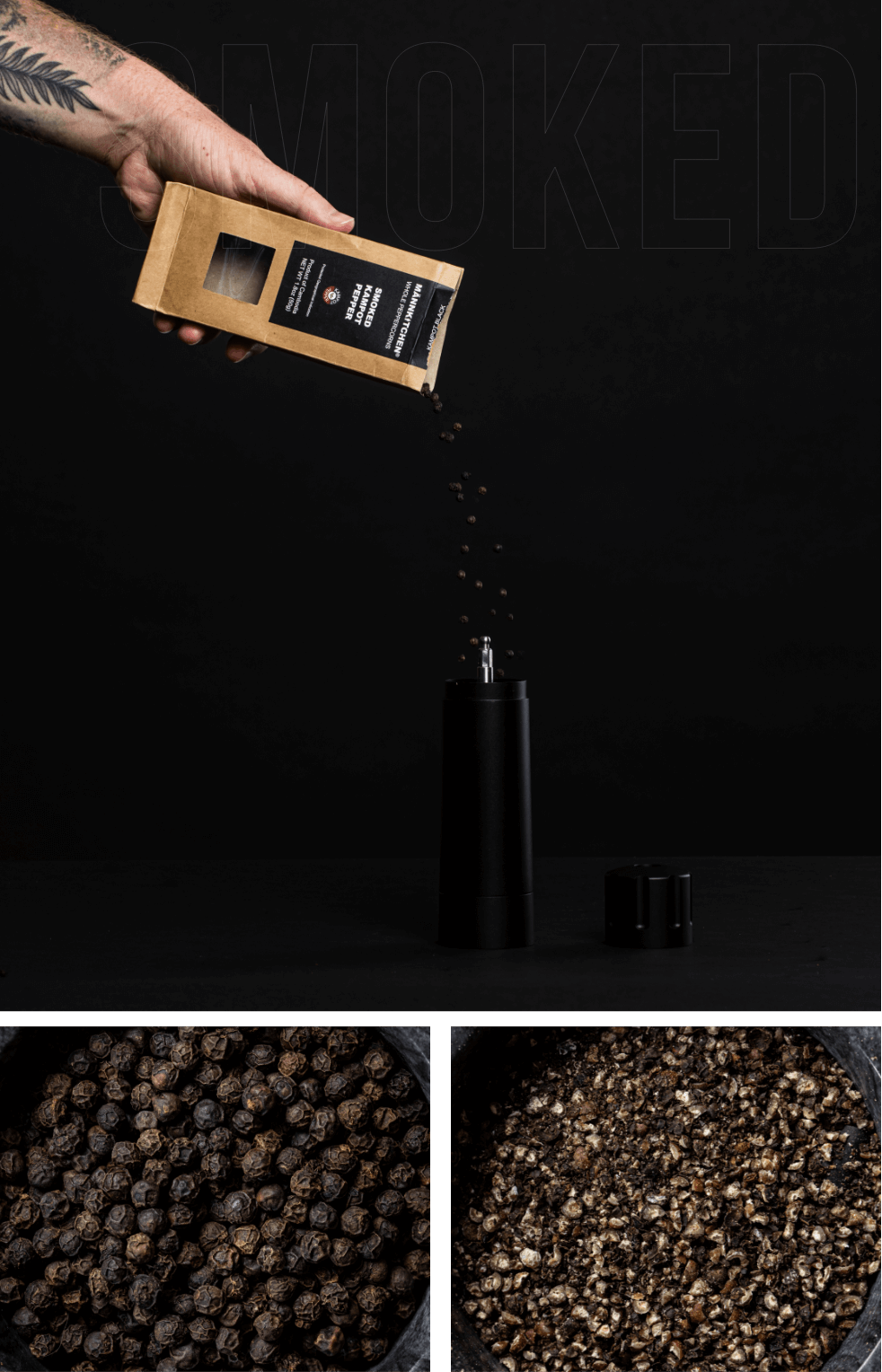 Our Black Pepper, Red Pepper, White Pepper, and Smoked Black pepper all come from the same flowering vine, Piper Nigrum. Each type of pepper is harvested at different points of ripeness and then carefully prepared to maximize its unique flavor, aroma, and heat.